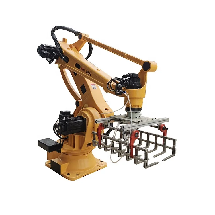 More compact: Robotic palletizers are more compact than conventional types. They only take up the space required by the robotic arm and the staging platform for the palletized load. Conventional types have many different components such as conveyors, pushers, and ejectors; these are all required for accomplishing a single operation. This configuration takes up significant floor area and headroom. They also have multiple staging areas for layer forming.Easy part replacement and sparing: Most conventional palletizer actuators are on the market. These actuators are more common since their application is not limited to palletizers. Large supplies are available because of the high demand. Most manufacturers of robotic palletizers use patented parts, which usually have limited suppliers.